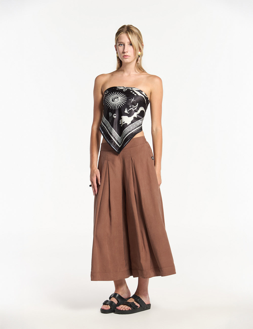 Discover our evening scarf. It's not just an accessory, it's an accessory that transforms into a modern top for everyday use or for special occasions. Made with soft, lightweight PET fabric with a unique, high-quality design from the brand, it offers a fluid drape and a comfortable fit that flatters the figure without compromising freedom of movement.